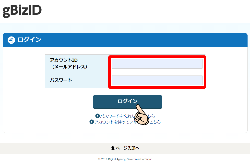アカウントIDとパスワードを入力してログインボタンをクリックしてください。